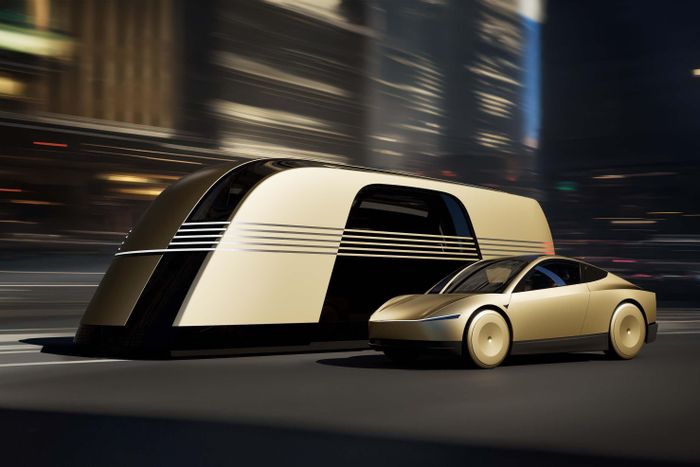 Tesla Robovan có phong cách như một toa tàu điện với khả năng chuyên chở lên đến 20 người và không cần tài xế.