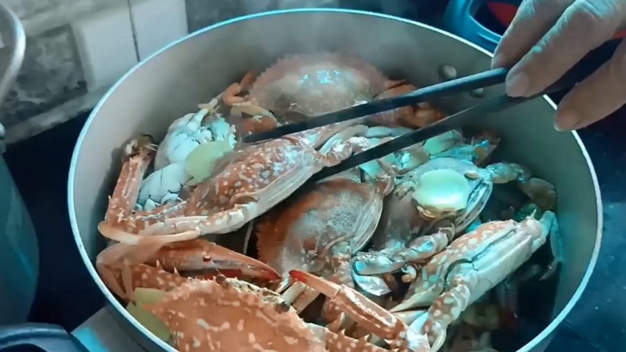 Kiểm Tra Món Ăn: Sau thời gian hấp, nhẹ nhàng mở nắp nồi và quan sát xem màu vỏ ghẹ có chuyển sang màu đỏ hay không, đồng thời kiểm tra xem thịt đã chín đều.