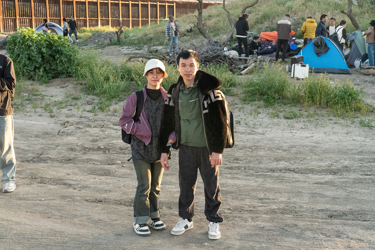 Người tị nạn Việt Nam đang đợi lực lượng Tuần duyên Biên giới Mỹ đón sau khi vượt biên giới vào Mỹ ở Jacumba Hot Springs ngày 28/4/2024 (Go Nakamura/Reuters)