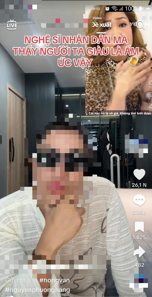 Cũng vì món trang sức đặc biệt này, NSND Hồng Vân bất ngờ nhận về ý kiến trái chiều. Mới đây, NSND Hồng Vân lên tiếng trên trang cá nhân khi một TikToker chê trách việc nữ nghệ sĩ khoe chiếc nhẫn có giá trị “khủng” là không phù hợp vào thời điểm này. Tiktoker nhắc tên CEO Phương Hằng khiến NSND Hồng Vân phải có chia sẻ để tránh việc bị hiểu lầm.