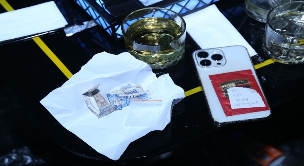 Tại hiện trường, cảnh sát thu một bịch ma túy, thuốc lắc, 32 bình sử dụng shisha, 36 hộp shisha (trong đó có 4 hộp đã sử dụng), 21 bình nghi khí cười, 507 bóng cười, 69 chai rượu chưa rõ nguồn gốc, xuất xứ.