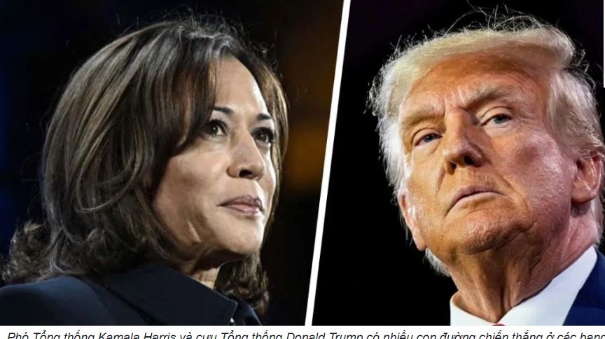 Phó Tổng thống Kamala Harris và cựu Tổng thống Donald Trump có nhiều con đường chiến thắng ở các bang chiến địa để giành đủ 270 phiếu đại cử tri. Hiện cả 2 ứng viên hiện đang tập trung vào 7 bang chiến địa có khả năng quyết định người giành chiến thắng trong cuộc bầu cử vào tháng 11 tới.