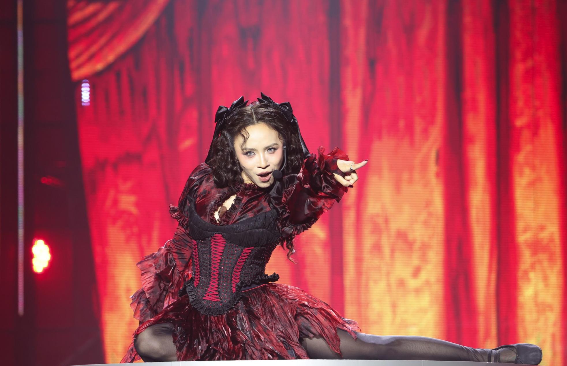 Các chị đẹp hò reo, đứng dậy cỗ vũ trước màn biến hóa liên tục của Tóc Tiên. Diva Mỹ Linh chờ đến phút chót để dành một phiếu bình chọn cho giọng ca Ngày mai.