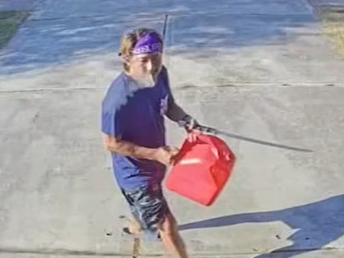 Một người đàn ông bị bắt sau khi những đoạn phim an ninh cho thấy dường như ông ta phóng hỏa hai nhà hàng xóm, tay thì huơ huơ một cây mã tấu.