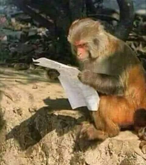 Con Khỉ thấy sợ, chạy trốn cũng khó thoát. Nó bèn nghĩ ra một mẹo. Nó chạy đi mua tờ báo rồi ngồi đọc.