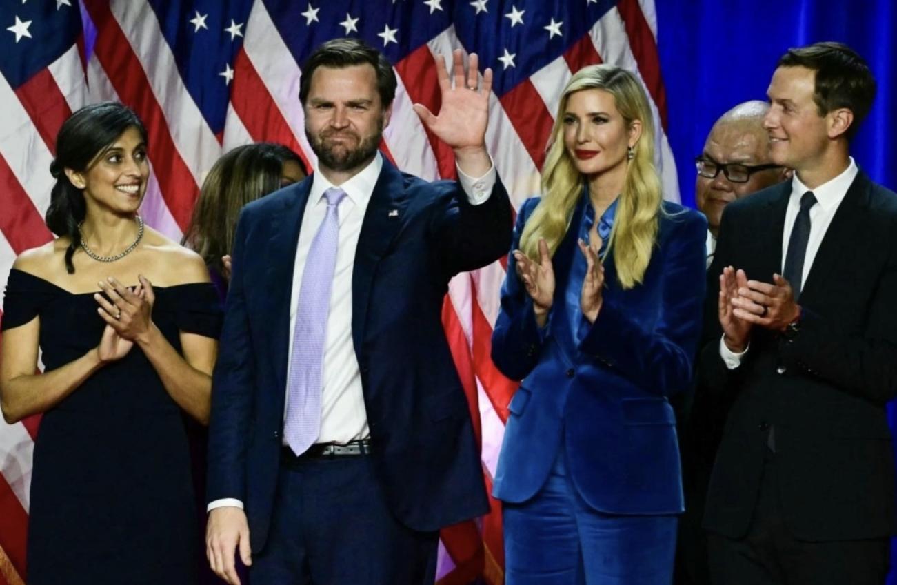 Ivanka Trump và chồng - Jared Kushner đứng cạnh Phó Tổng thống Mỹ tương lai JD Vance và vợ, ngày 6/11 (Ảnh: Getty Images).