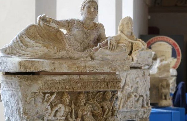 Số cổ vật này nằm trong một lăng mộ cổ của người Etruscan, có thể thuộc về một gia đình Etruscan quyền thế sống từ những năm 300 đến 100 năm trước Công nguyên.