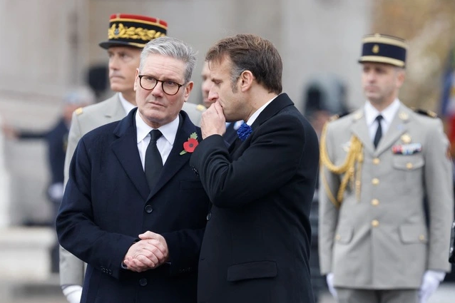 Thủ tướng Anh Keir Starmer và Tổng thống Pháp Emmanuel Macron tại lễ kỷ niệm ngày kết thúc Thế chiến 1 tại Paris hôm 11.11