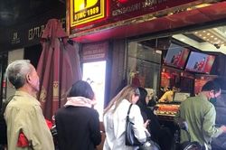 Tại cửa hàng vàng Bảo Tín Minh Châu, người dân không cần phải nhận số nhưng xếp hàng mất 30-45 phút mới đến lượt mua.