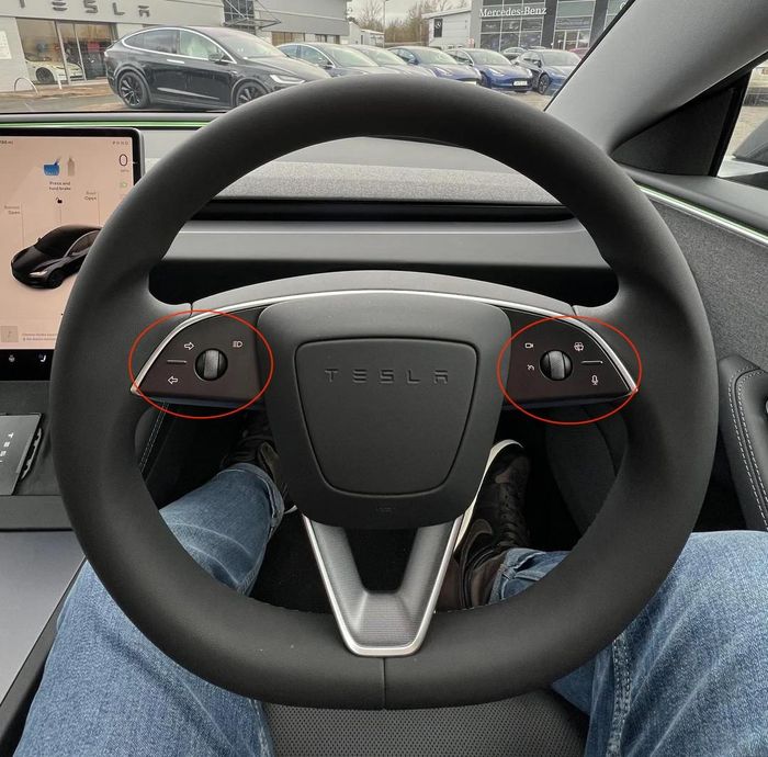 Trên xe Tesla hiện nay, các cần gạt xi-nhan hay gạt mưa đều chuyển sang dạng nút cảm ứng tích hợp trên vô-lăng. Ảnh: Carscoops