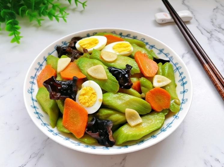 Nguyên liệu: Su su, trứng, mộc nhĩ, cà rốt