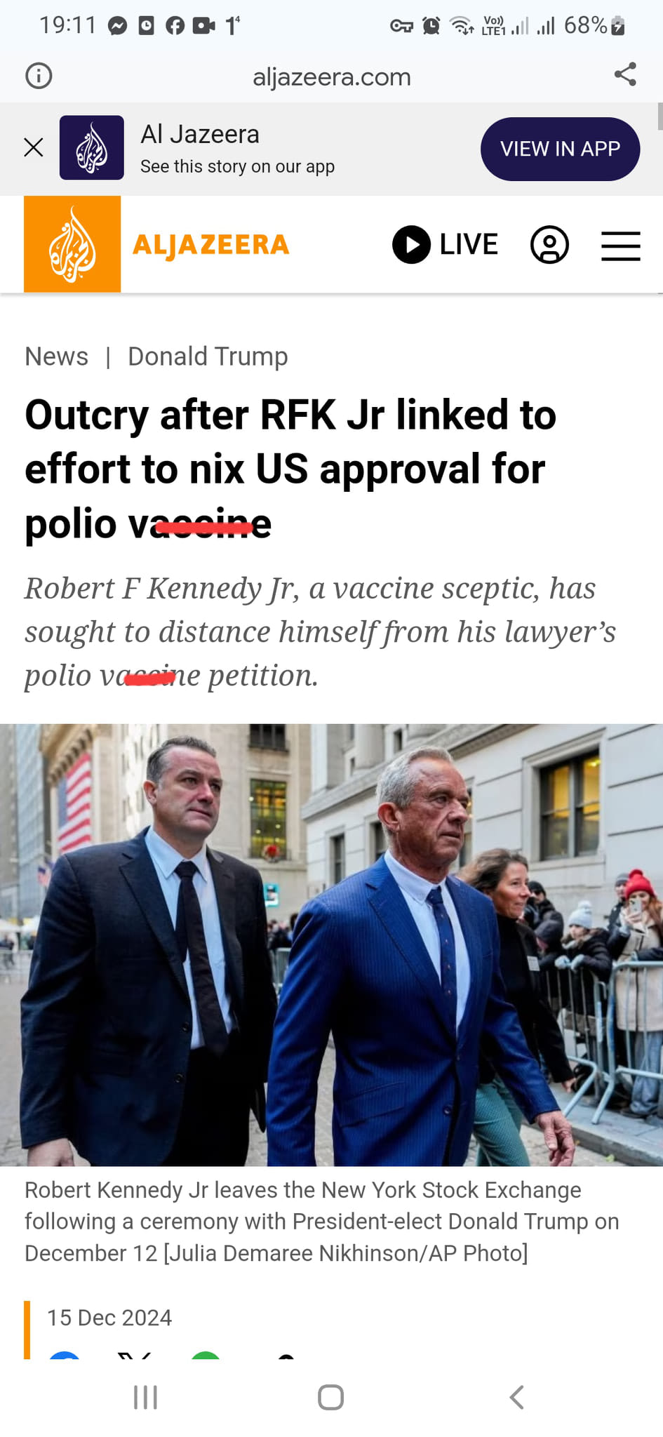 Robert F. Kennedy Jr , người được tổng thống Trump chọn làm bộ trưởng Bộ Y tế. Ông là người kịch liệt chống lại zắc sin, ủng hộ sữa thô.