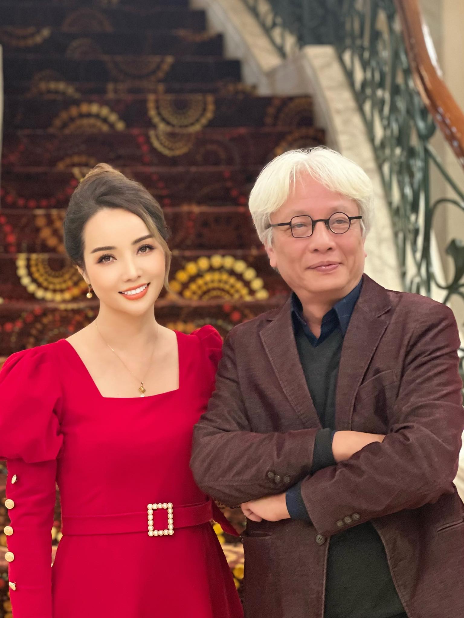 Bức ảnh kỷ niệm của Họa sĩ Trung Phan và diễn viên Mai Thu Huyền. Ảnh: FBNV
