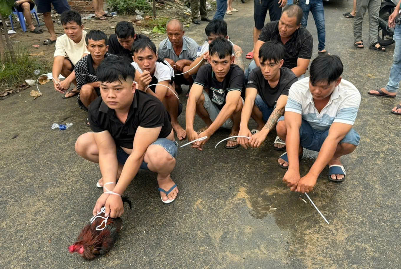 Các đối tượng trong sới gà bị cảnh sát bắt giữ. Ảnh: Đ.X.