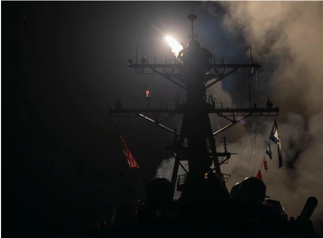 Tàu khu trục USS Gravely phóng tên lửa ở biển Đỏ hồi tháng 1