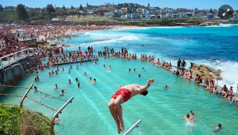 Hàng nghìn du khách đổ về bãi biển Bronte để ăn mừng Giáng sinh dù nơi này nổi tiếng là hỗn loạn. Mới nhất, một thanh niên bị thương nặng khi cố nhảy khỏi vách đá.