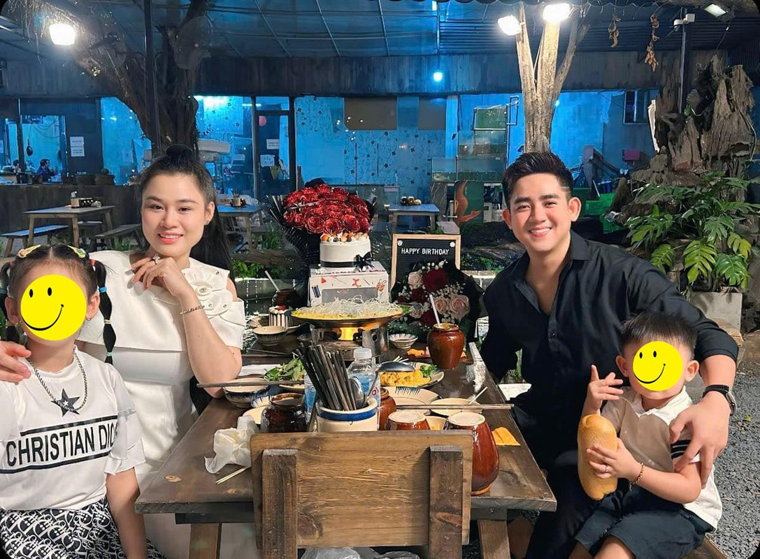 Linh Lan đón sinh nhật bên chồng và 2 con. (Ảnh FBNV)