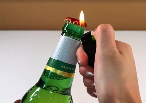 Phần nắp chai bia được bịt kín bởi một vòng nhựa quanh miệng chai. Để dễ dàng mở nắp, bạn có thể sử dụng nhiệt. Hơ miệng chai bằng ngọn lửa trong vài giây sẽ làm không khí bên trong giãn nở. Sau đó, chỉ cần xoay nhẹ, nắp chai sẽ mở ra một cách dễ dàng.