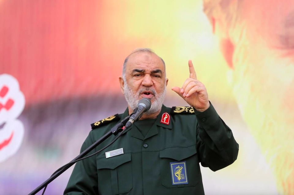 Tư lệnh IRGC Hossein Salami làm gia sự kiện công bố “thành phố tên lửa” dưới lòng đất. Ảnh: Anadolu Agency.