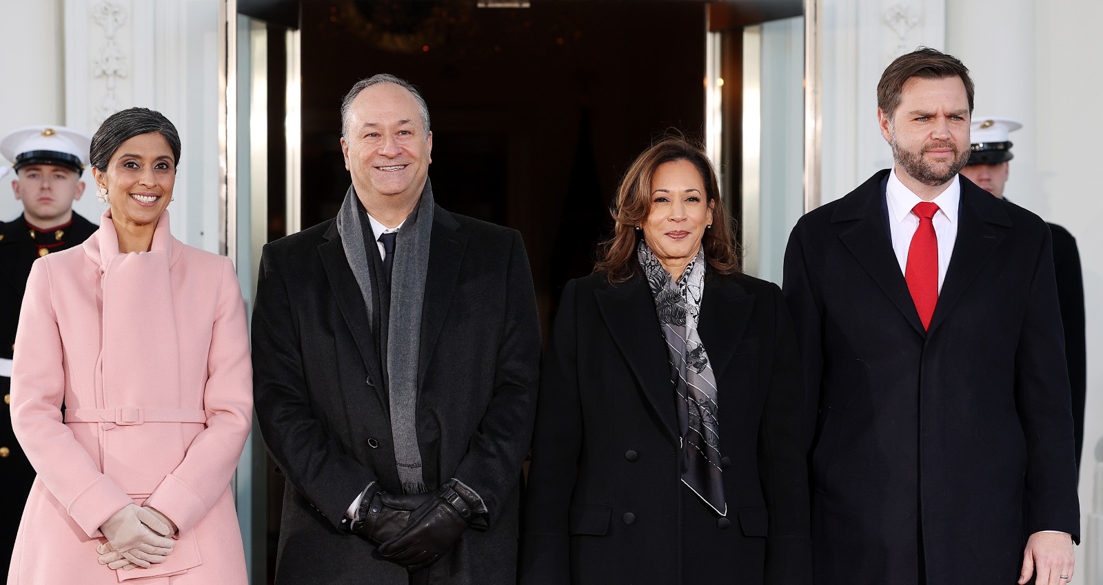Phó Tổng thống Kamala Harris và Đệ nhị Phu nhân Doug Emhoff đã gặp Phó Tổng thống đắc cử JD Vance và Đệ nhị Phu nhân Usha Vance tại Nhà Trắng trước lễ nhậm chức hôm nay.
