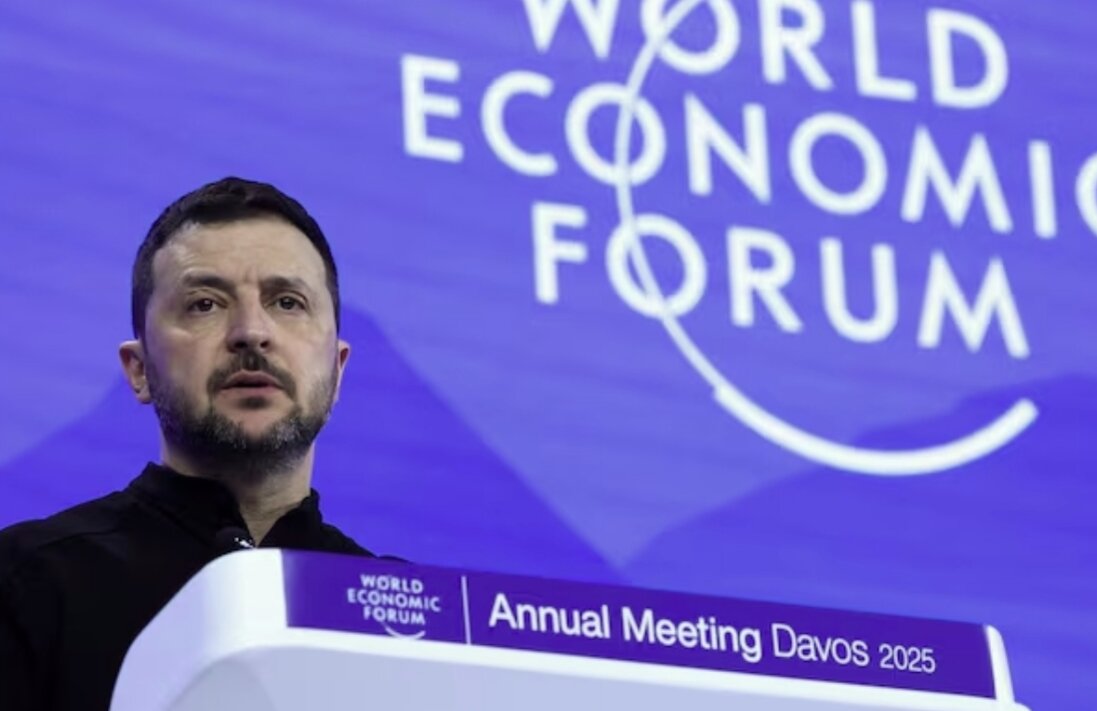 Tổng thống Ukraine Volodymyr Zelensky phát biểu tại cuộc họp thường niên lần thứ 55 của Diễn đàn Kinh tế Thế giới (WEF) tại Davos, Thụy Sĩ ngày 21/1. Ảnh: Reuters