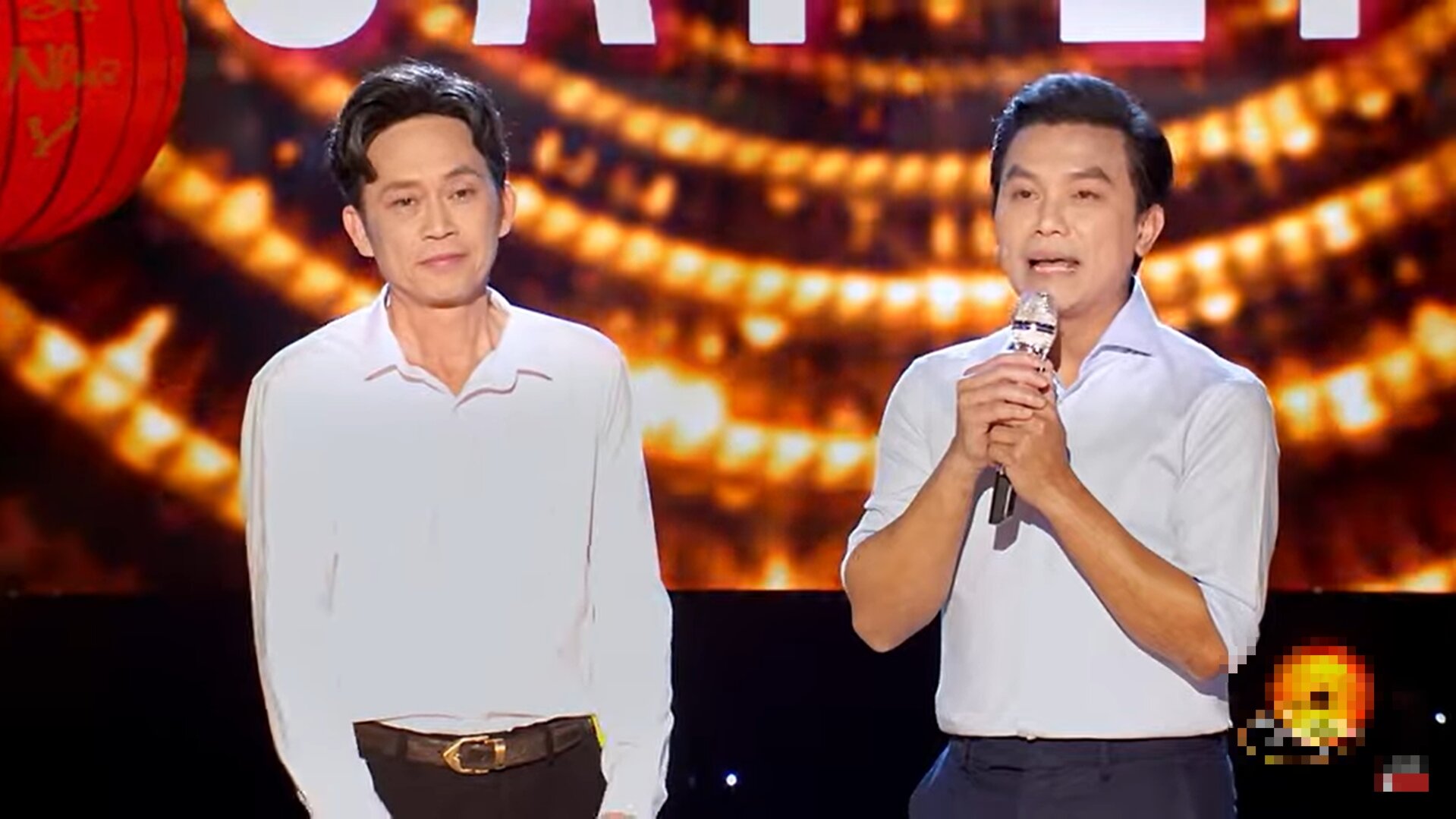 NSƯT Hoài Linh và ca sĩ Mạnh Quỳnh đã song ca cùng nhau ca khúc tân cổ Mùa xuân xa quê. Ảnh: Chụp màn hình