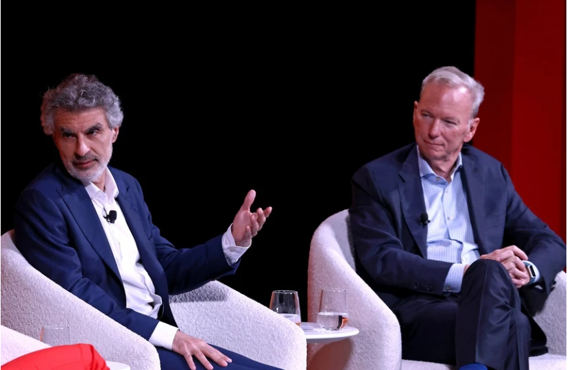 Yoshua Bengio (trái) và Eric Schmidt, từng là kỹ sư tại Apple, tại sự kiện. Ảnh: Time.