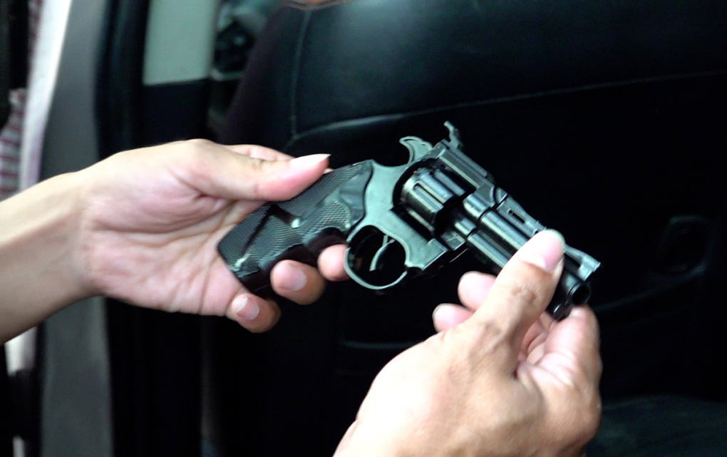 Khẩu súng thu giữ của nhóm giang hồ. Ảnh: Trà Long