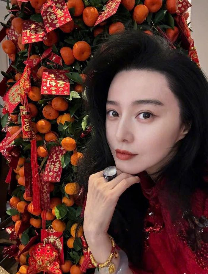 Phạm Băng Băng vừa chia sẻ loạt ảnh chúc mừng năm mới trên trang cá nhân, thu hút sự quan tâm của khán giả. Nữ diễn viên mặc nguyên set đồ đỏ, vui vẻ tạo dáng bên cây cảnh trang trí nhà dịp Tết.