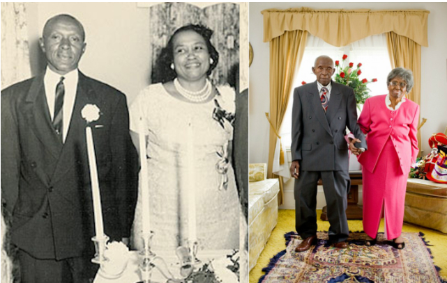 Vợ chồng Herbert và Zelmyra Fisher vào ngày cưới năm 1924 và ngày xác nhận kỷ lục năm 2010. (Ảnh: The Standard News)