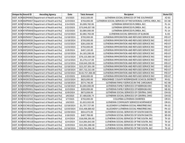 Hình phía dưới cho thấy chỉ riêng trong ngày 22 tháng 1, sau khi ông Trump nhậm chức. Bộ y tế đã gởi ra cho Lutheran Social Services gần 80 triệu đô. Hình.