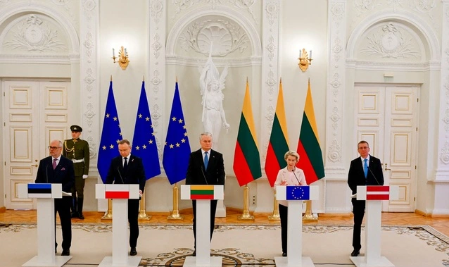 Tổng thống Estonia Alar Karis, Tổng thống Ba Lan Andrzej Duda, Tổng thống Lithuania Gitanas Nauseda, Chủ tịch Ủy ban châu Âu Ursula von der Leyen và Tổng thống Latvia Edgars Rinkevics (từ trái sang) họp tại Vilnius (Litva) ngày 9.2.2025