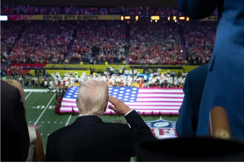 Ông Donald Trump là tổng thống đương nhiệm đầu tiên dự Siêu cúp Bóng bầu dục Mỹ Super Bowl hôm 9/2. Ảnh: New York Times.
