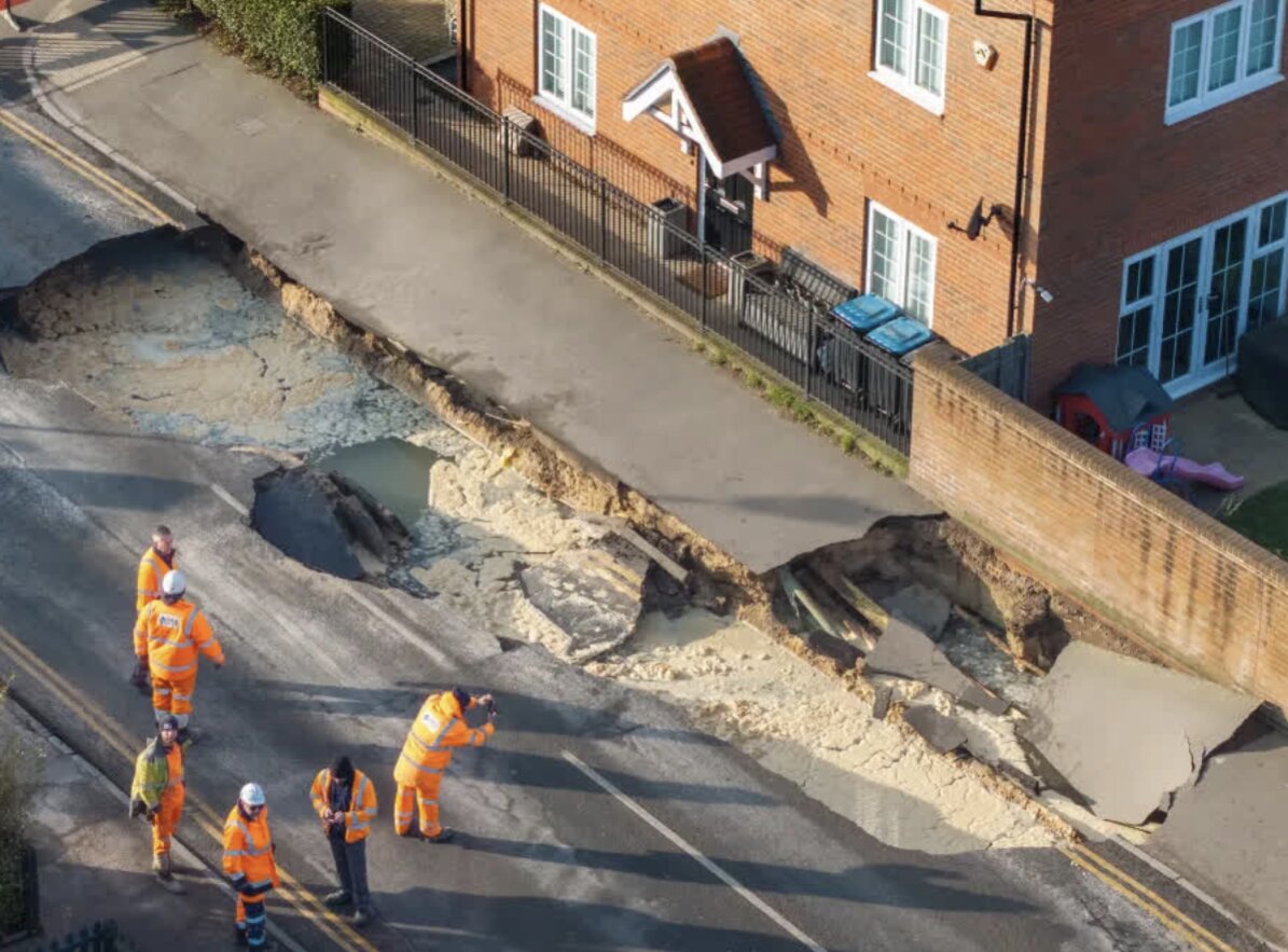 Một hố tử thần sâu 20m bất ngờ xuất hiện giữa đường dân cư ở làng Godstone (Surrey, Anh) khiến người dân phải sơ tán. Sự việc xảy ra sau khi một đường ống nước chính bị vỡ vào rạng sáng thứ Ba (18/2).