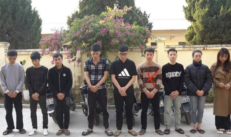 8 đối tượng còn lại gồm: Bạch Bảo Hà (SN 2001), Lê Xuân Chuẩn (SN 2002), Đặng Xuân Hinh (SN 2000), Bùi Thành Đạt (SN 2002), Bạch Long Vĩ (SN 1999), Nguyễn Hồng Sơn (SN 2001) đều có HKTT tại xã Phú Túc, huyện Phú Xuyên, TP Hà Nội; Đoàn Thu Phương Nhung (SN 2002) HKTT Trần Tế Xương, TP Nam Định, tỉnh Nam Định và Nguyễn Thị Khánh Linh (SN 2005) HKTT Thủy Phương, Hương Thủy, Thừa Thiên Huế.
