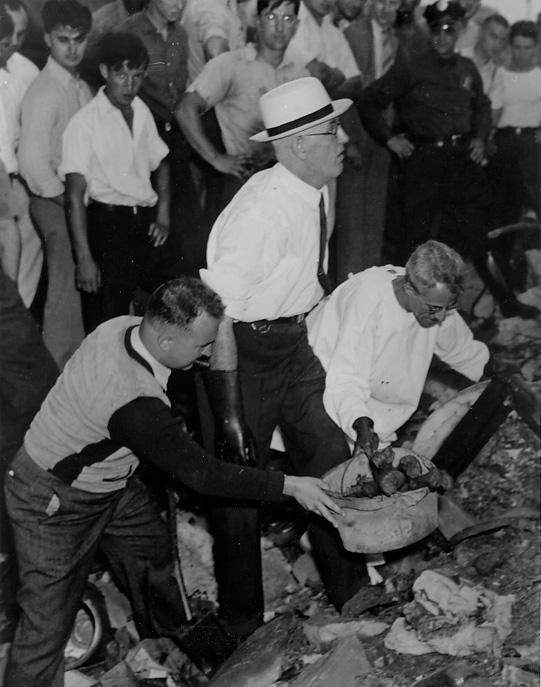 Thám tử và cảnh sát tìm kiếm các bộ phận thi thể giữa những tảng đá ven hồ, năm 1938. Ảnh: CPL