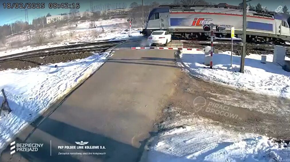 Tài xế của chiếc Renault Laguna Coupe không chút ngần ngừ, lái xe chui qua barie đã hạ và chạy thẳng lên đường ray. Từ bên phải, đoàn tàu lao tới và đâm trúng chiếc xe con. Ôtô xoay hơn một vòng, văng xuống rìa đường phủ tuyết trắng.