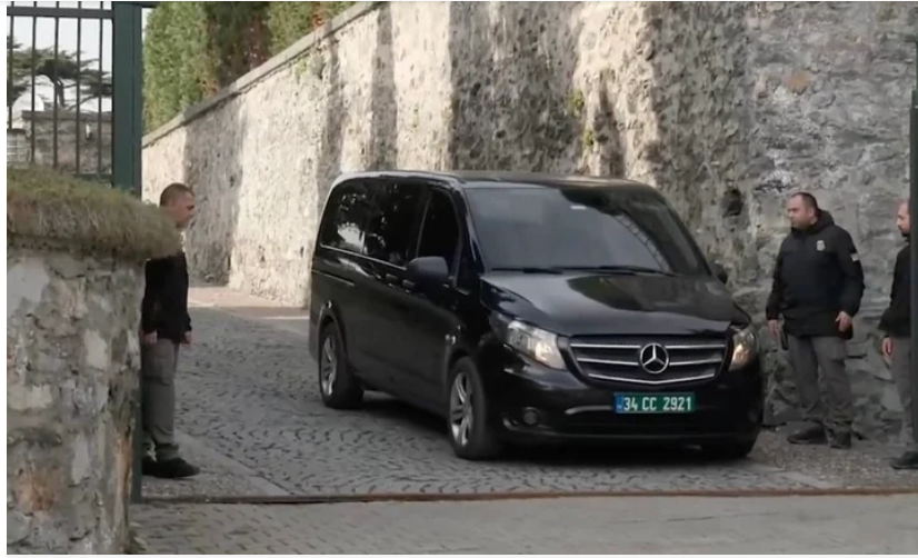 Xe chở phái đoàn Nga rời khỏi dinh thự Tổng lãnh sự Mỹ ở Thổ Nhĩ Kỳ. (Ảnh: TASS)