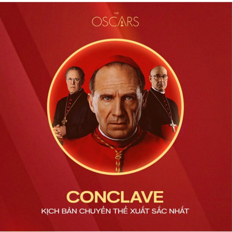 Trong khi đó, tại hạng mục Kịch bản chuyển thể xuất sắc nhất, bộ phim kinh dị Conclave xoay quanh quá trình bí mật lựa chọn một giáo hoàng mới đã giành chiến thắng.