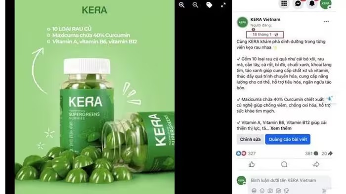 Cục An toàn thực phẩm đã nhận được thông tin trên một số website, Facebook, TikTok... đang quảng cáo sản phẩm thực phẩm bổ sung Kẹo rau củ Kera. Sản phẩm này do Công ty Cổ phần Tập đoàn Chị em rọt công bố và sản xuất tại Công ty Cổ phần ASIA LIFE, có dấu hiệu vi phạm về quảng cáo thực phẩm.