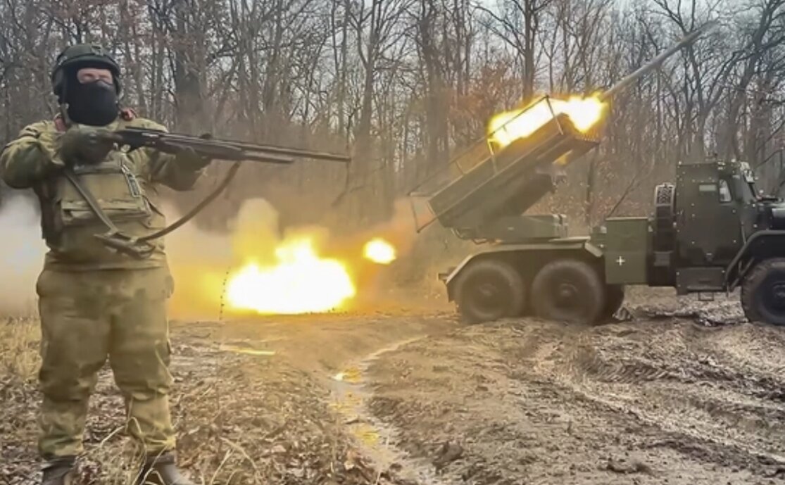 Một quân nhân Nga gần hệ thống tên lửa Grad đang phóng ở vùng Kursk. Ảnh: BQP Nga