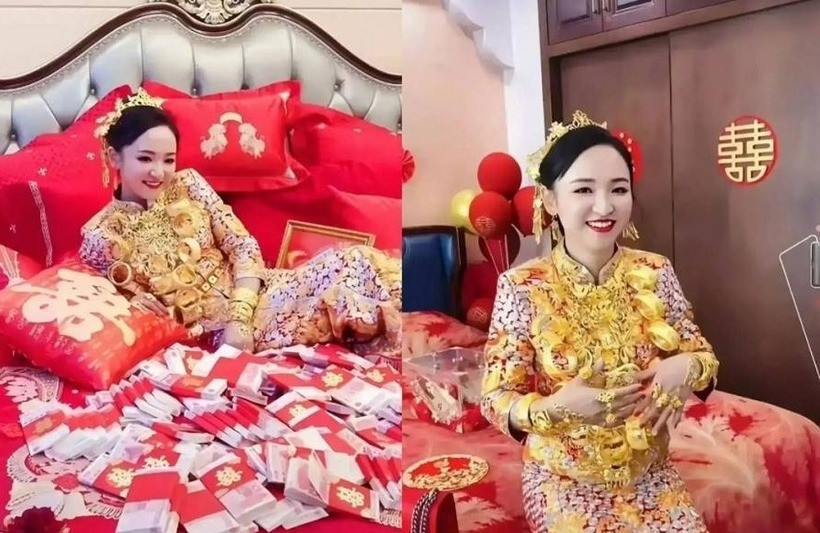 Đến ngày lên xe hoa, cô được song thân tặng cho số của hồi môn trị giá 880.000 NDT (gần 3,1 tỷ đồng) tiền mặt và hơn 20kg vàng.