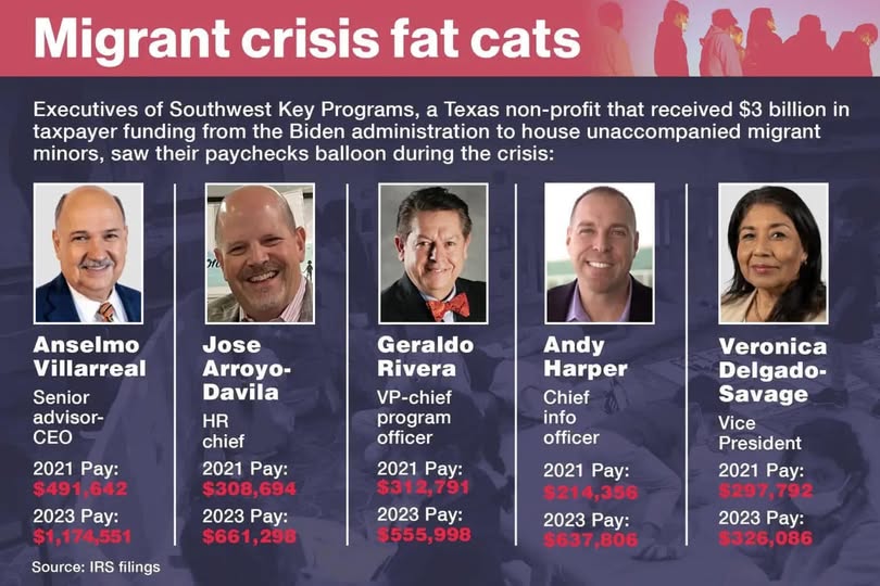 Theo hồ sơ thanh toán nội bộ bổ sung mà báo New York Post có được, những giám đốc điều hành đó và hàng chục nhân viên cao cấp khác tại Southwest Key đã nhận được mức lương tăng lên sáu con số đó trong hai năm đầu tiên của chính quyền Biden — với mức tăng từ 10% đến cao tới 112%.