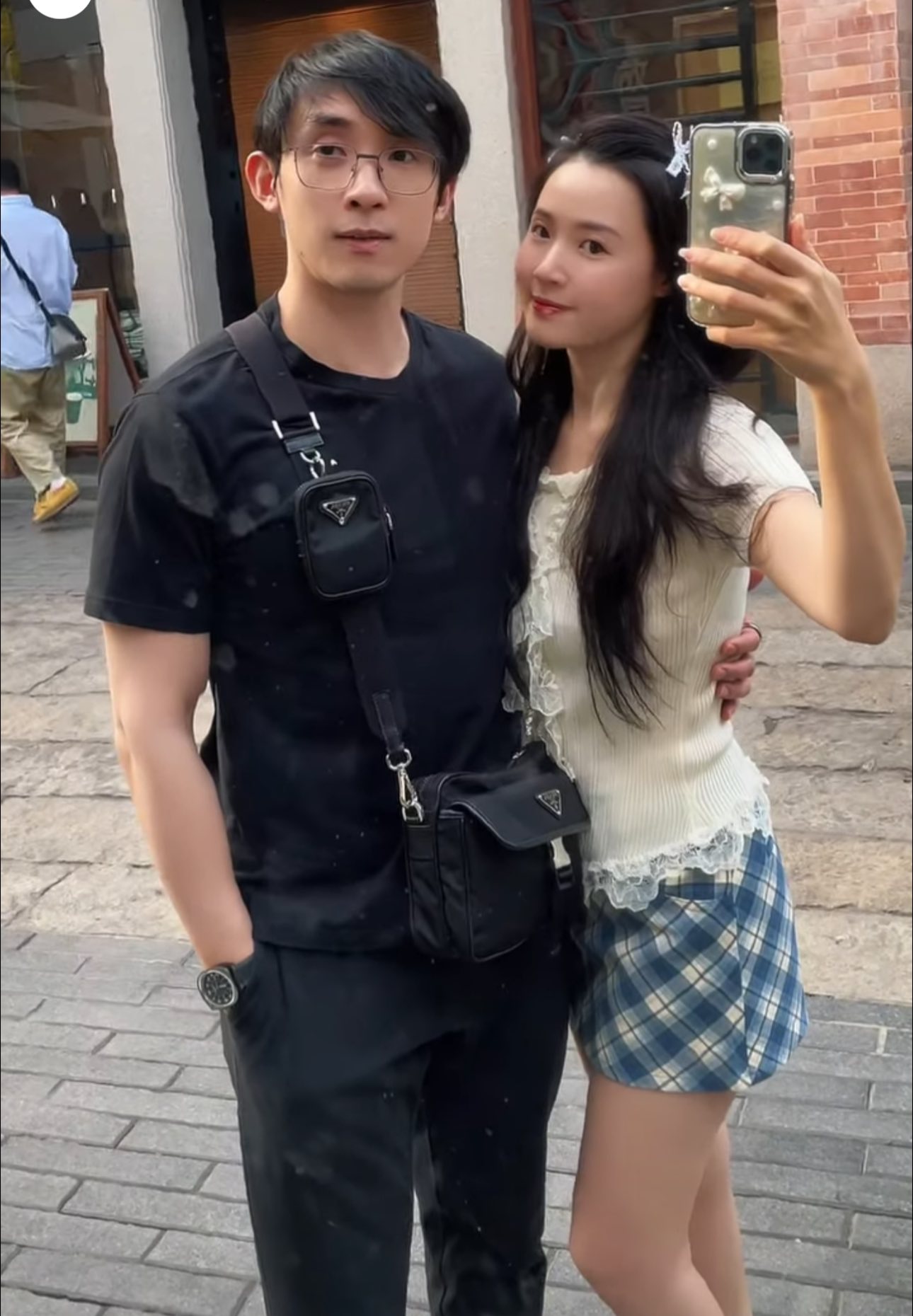 Midu cùng chồng có những cử chỉ âu yếm trên đường phố Quảng Châu (Trung Quốc), vóc dáng có phần tròn trịa khiến fan vẫn "đoán già đoán non".