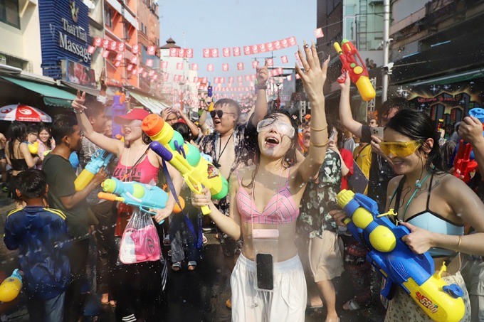 Du khách xuống đường tham gia lễ hội Songkran 2024. Ảnh: The Nation