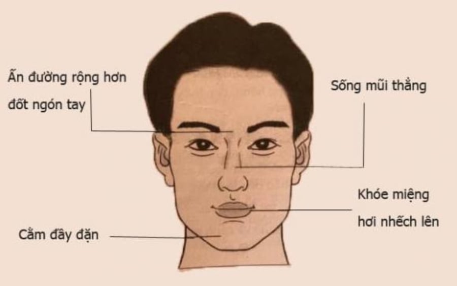 Những đặc điểm khác của người đàn ông có tướng mạo tự tin là cằm đầy đặn, khóe miệng hơi nhếch lên, sống mũi thẳng.