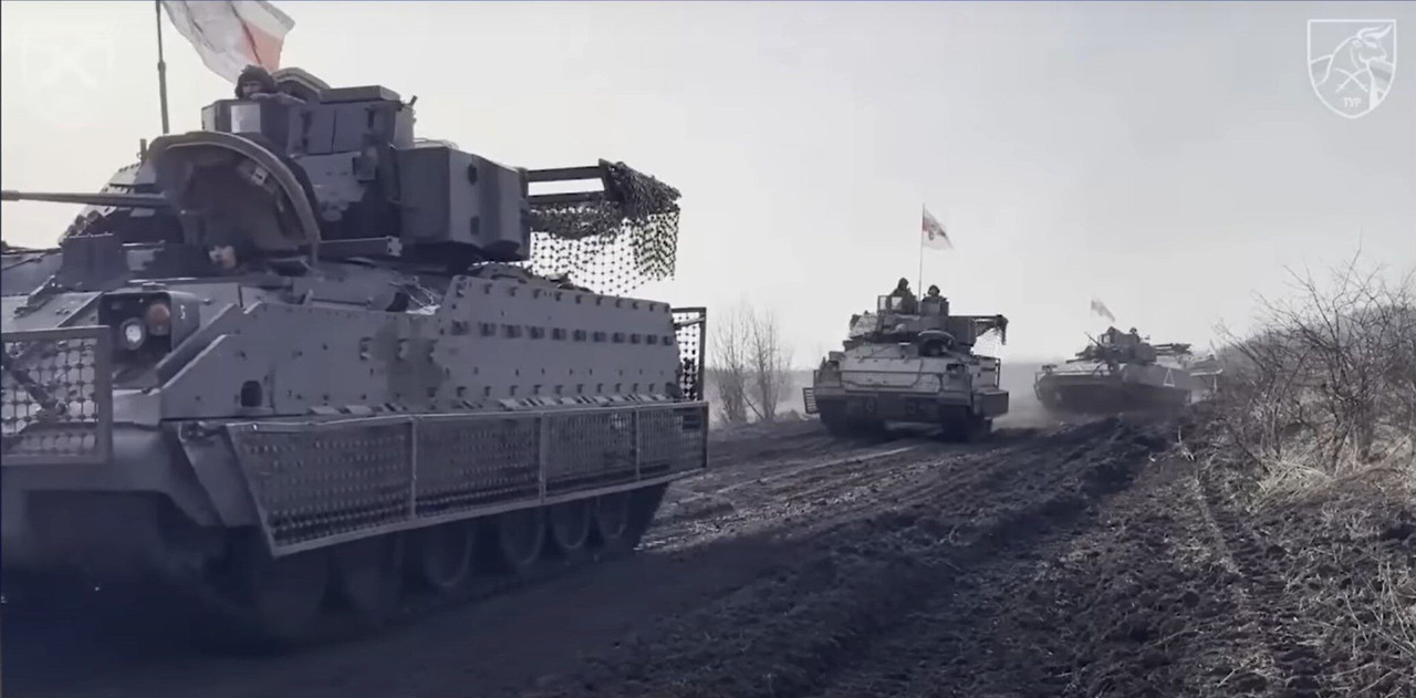 2. Tấn công bằng xe chiến đấu Bradley: Những chiếc xe này có khả năng chịu mìn tốt, bảo vệ lính bên trong. Nếu trúng mìn hoặc bị máy bay không người lái (UAV) vô hiệu hóa, binh sĩ rời xe và tiếp tục tiến lên.