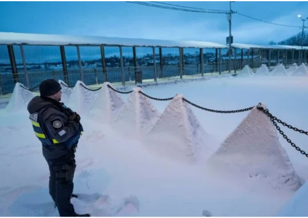 Răng rồng và bẫy chống tăng dưới tuyết ở biên giới của Estonia với Nga. Ảnh David Rose/Telegraph