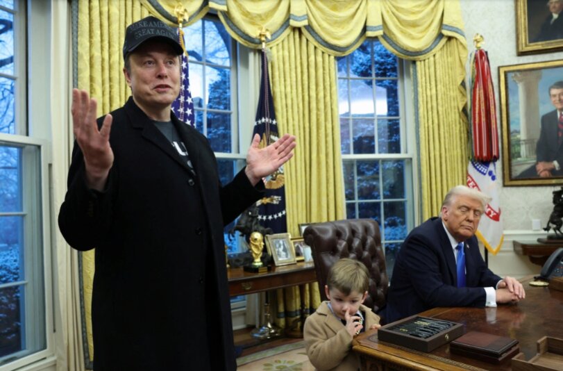 Tỷ phú Elon Musk (trái) tại Phòng Bầu dục ở Nhà Trắng ngày 11/2. Ảnh: Reuters