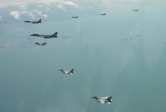 Ngày 15/4, Hàn Quốc và Mỹ đã tổ chức các cuộc tập trận không quân chung, có sự tham gia của máy bay ném bom B-1B của Mỹ, nhằm phô trương sức mạnh chống lại các mối đe dọa quân sự của Triều Tiên.